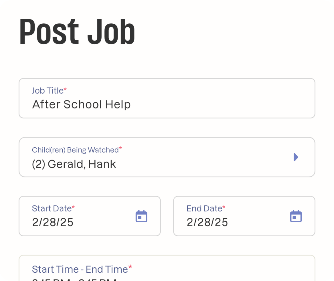 Post babysitting jobs in just a few taps—first come, first served—with all the details your sitters need. Or view sitter availability and claim their available time.